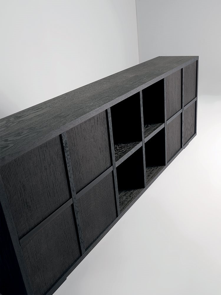 Credenza a giorno studiata e realizzata per andare incontro al desiderio di superfici più leggere e consone alle espressioni architettoniche contemporanee. Mascheroni unisce così la sintesi della materia, abbinata alla grande robustezza e solidità di struttura. I cubi accessori estraibili con ante push-pull permettono svariate configurazioni e diversi schemi compositivi.