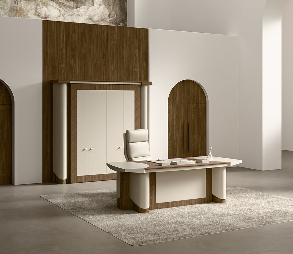 Planet è un sistema ufficio completo che si compone di scrivanie, tavoli conferenza, tavolini, pareti boiserie autoportanti e contenitori per l’archiviazione. Dotata di due contenitori laterali con cassetti. Top disponibile interamente in pelle nella versione Planet, la versione “Limited Edition” invece combina elegantemente legno e pelle sul top, ulteriormente impreziosito dalla lavorazione legno rifinita manualmente che diventa l’elemento caratteristico distintivo dell’intera collezione Planet. Disponibile la versione con prolunga frontale o laterale.