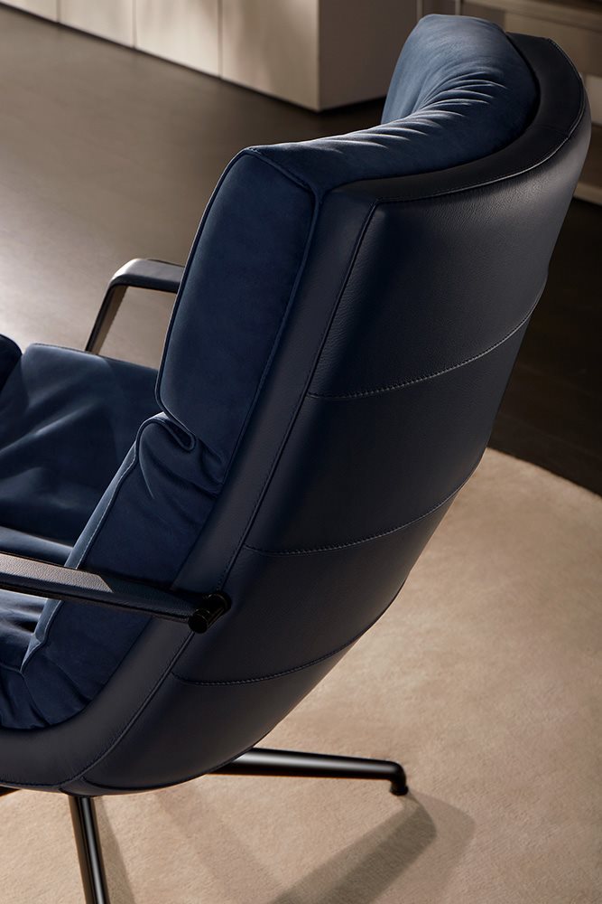 La nuova poltrona Cabrio di Mascheroni, prende nome dalle capote reclinabili delle roadster d'epoca. Le cuciture presenti sul retro della scocca della seduta portano il segno distintivo che ricorda gli elegantissimi tettucci richiudibili manualmente.