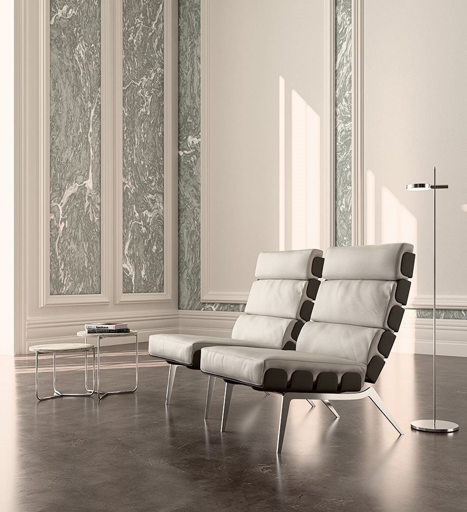 Concepita per dialogare con lo spazio, Quiete SBR offre un punto di osservazione privilegiato. Le sue linee uniscono rigore geometrico e morbidezza, rendendo l'atto del sedersi un'esperienza di assoluta contemplazione.