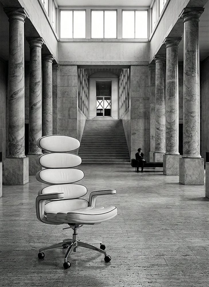 Poltrona direzionale caratterizzata da singoli moduli realizzati in pelle e posizionati in modo tale da adattarsi individualmente alla forma del corpo e garantire il massimo comfort di seduta. Disponibile come sedia girevole, nella versione ufficio con schienale alto, poggiatesta, regolabile in altezza e ruote adatte ad ogni tipo di superficie. Struttura portante in acciaio e legno curvato di betulla. Sistema di elevazione gas per la regolazione del sedile in altezza. Imbottitura in gomma indeformabile con rivestimento in dacron. La collezione prevede inoltre il modello AIRONE OFFICE 109 (schienale 109/116) e AIRONE OFFICE CONFERENCE (senza braccioli). Rivestimento disponibile in tutte le pelli bovine naturali della collezione “Mascheroni Leather Colour System”. Ogni prodotto Mascheroni, completamente artigianale, è contrassegnato da una piastra incisa “Mascheroni srl made in Italy” che ne certifica l’autenticità.