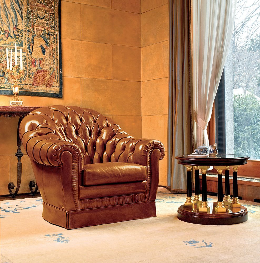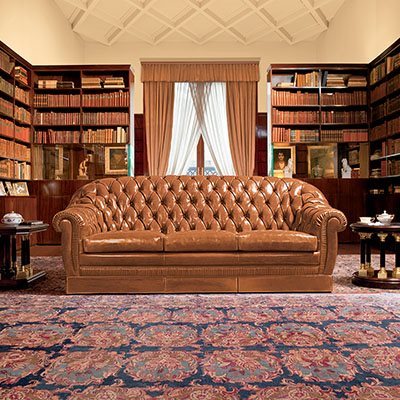 Al di là della preziosità di ogni oggetto e del suo prezzo, è proprio sulla meticolosità dei gesti, sul tempo necessario ad apprenderli e a trasmetterli che vogliamo puntare l’attenzione, l'impeccabile lavorazione capitonnée, il molleggio ottenuto con molle biconiche legate a mano ed appoggiate su cinghie di juta, il crine vegetale dell’imbottitura di schienale e braccioli modellato a mano. La struttura portante è realizzata in legno massiccio. La collezione Royal si compone di poltrona divano due posti e divano tre posti. Ogni prodotto Mascheroni, completamente artigianale, è contrassegnato da una piastra incisa “Mascheroni srl made in Italy” che ne certifica l’autenticità. Ogni prodotto Mascheroni, completamente artigianale, è contrassegnato da una piastra incisa “Mascheroni srl made in Italy” che ne certifica l’autenticità.